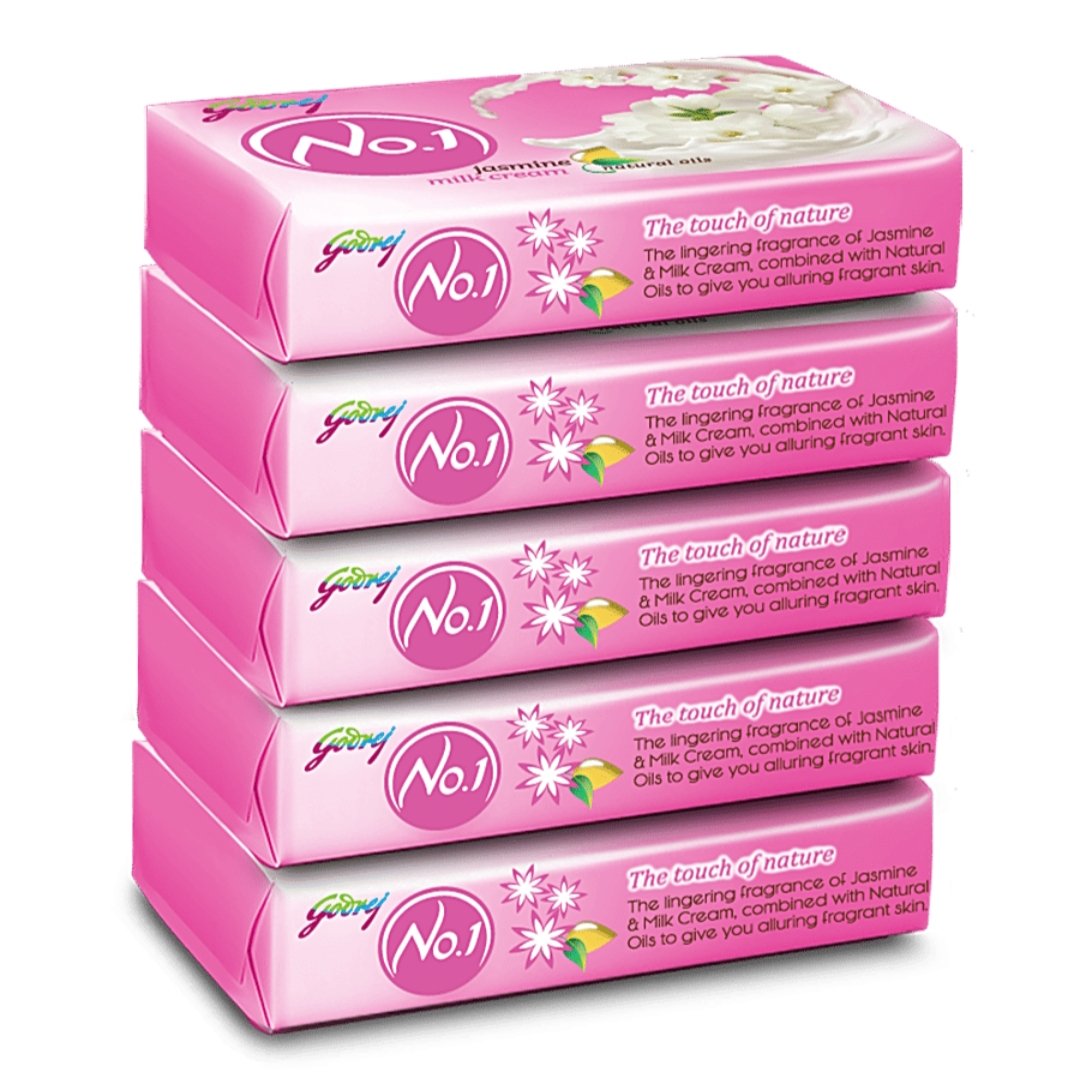 Godrej No.1 Jasmine Milk Cream Soap | Soft & Fragrant Skin | 100g Pack of 5