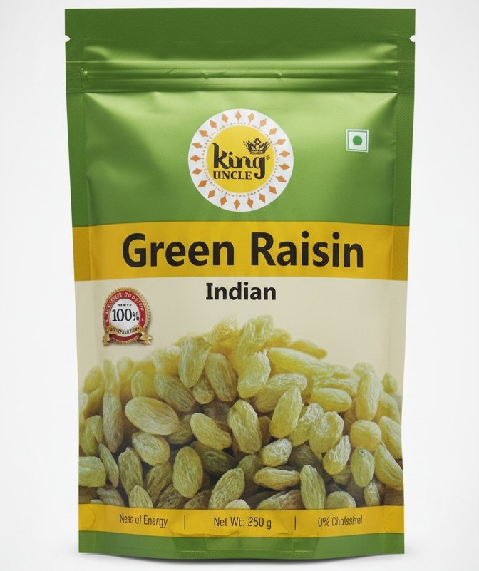 Green Raisin (Angoor Kishmish) ek tasty aur nutritious dry fruit hai jo apke daily diet ko healthy banata hai. Yeh natural sweetness ke sath instant energy deta hai aur immunity ko strong banata hai.
