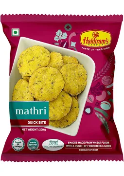 Haldiram Mathri is a delicious and popular Indian snack made with authentic ingredients. Hygienically packed to ensure freshness.