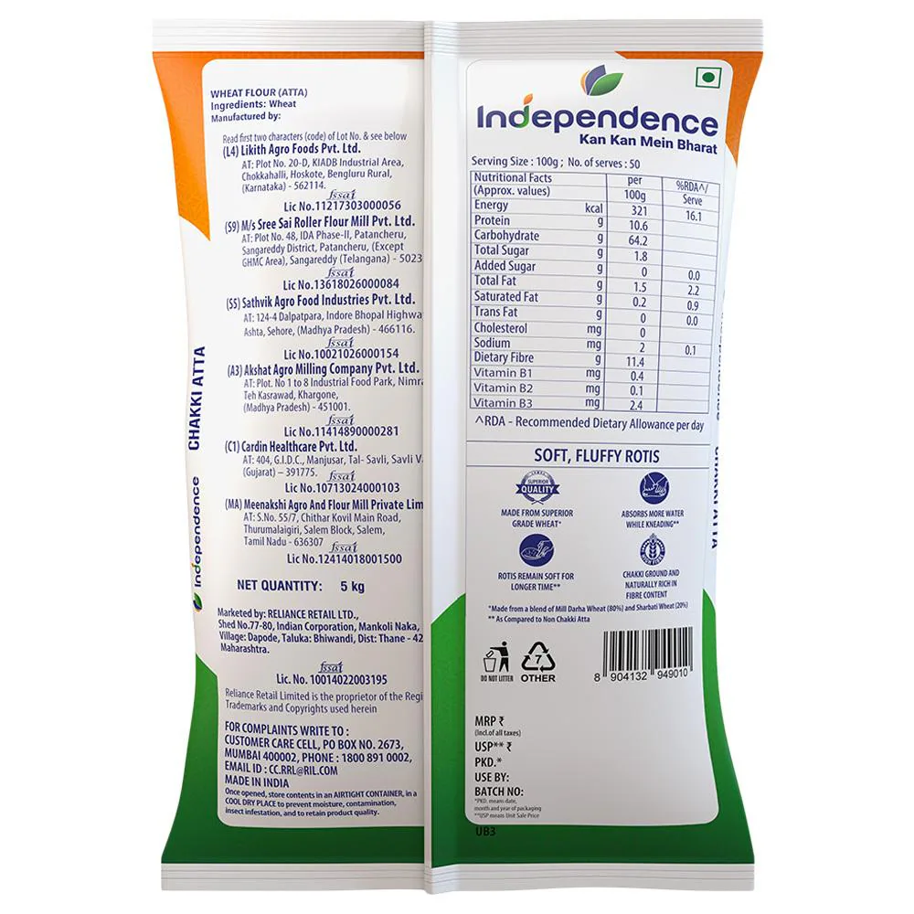 INDEPENDENCE Chakki Atta | Soft & Tasty Rotis | Natural Aroma & Fibre